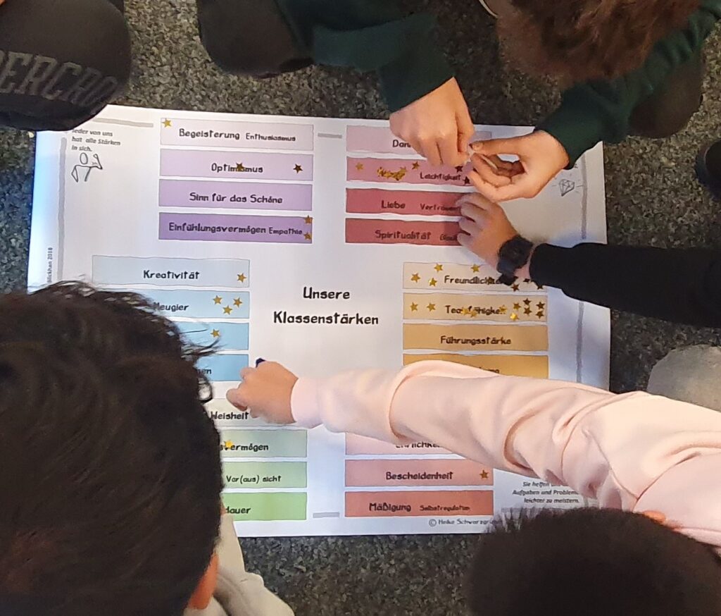 Ein besonderer Schwerpunkt lag in diesem Jahr auf dem Thema Persönlichkeitsentwicklung. Frau Heike Schwarzgruber (Consultant of Positive Psychology) war zu Gast am CSG und führte mit unseren Schülerinnen und Schülern ein umfangreiches und praxisnahes Training zum Thema „Stärken stärken“ durch. Neben der individuellen Förderung persönlicher Fähigkeiten zielte dieser Workshop ausdrücklich darauf ab, die Klassengemeinschaft zu stärken, das gegenseitige Verständnis zu fördern und ein wertschätzendes Miteinander zu unterstützen.