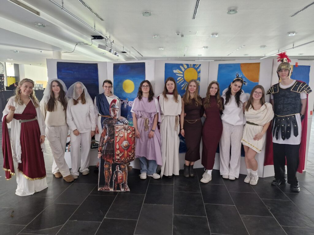 Musikerinnen und Musiker verschiedener Ensembles und Jahrgangsstufen begleiteten diesen fröhlichen und lehrreichen Tag und trugen zu einer sehr lebendigen Begegnung mit einer vermeintlich „toten“ Sprache bei.
