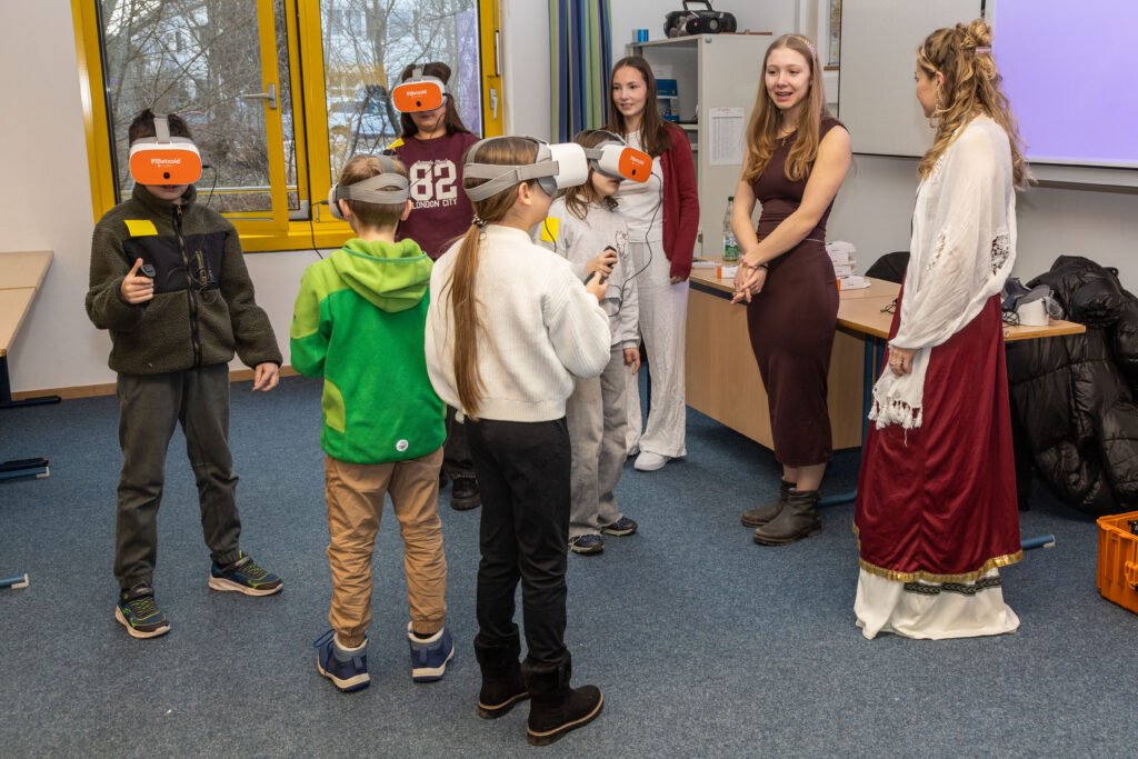Im Januar konnten mehrere Grundschulklassen aus der Umgebung beim Römertag am CSG in eine faszinierende römische Welt eintauchen. Das P-Seminar Latein organisierte gemeinsam mit weiteren Helferinnen und Helfern verschiedene Workshops. So besuchten die Kinder unter anderem eine scola, eine mensa sowie eine Gladiatorenschule und erlebten mit VRBrillen sogar einen virtuellen Ausflug ins antike Rom.