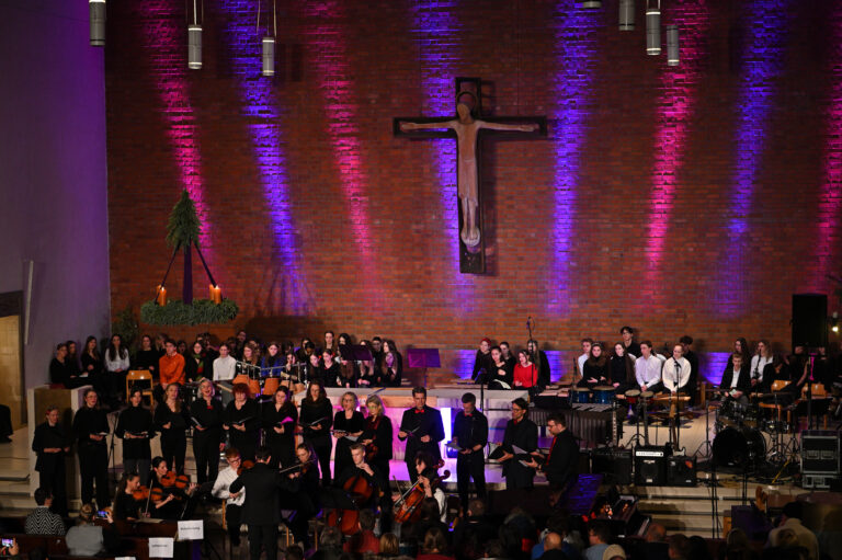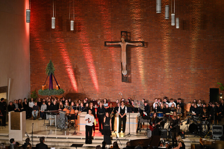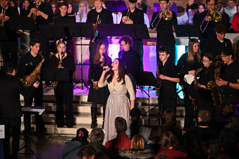 Die Big Band sorgte schließlich mit A Big Band Christmas II, Just Two of Us und The Christmas Song für mitreißende Rhythmen und jazzige Klänge. Daran fügte sich ein fulminanter Abschluss, ein gemeinsames Finale: Alle Mitwirkenden sangen zusammen mit allen Besucherinnen und Besuchern das traditionelle In dulci Jubilo – ein bewegender Abschluss mit Gänsehautmoment, bei dem die Verbundenheit der Schulfamilie spürbar wurde.